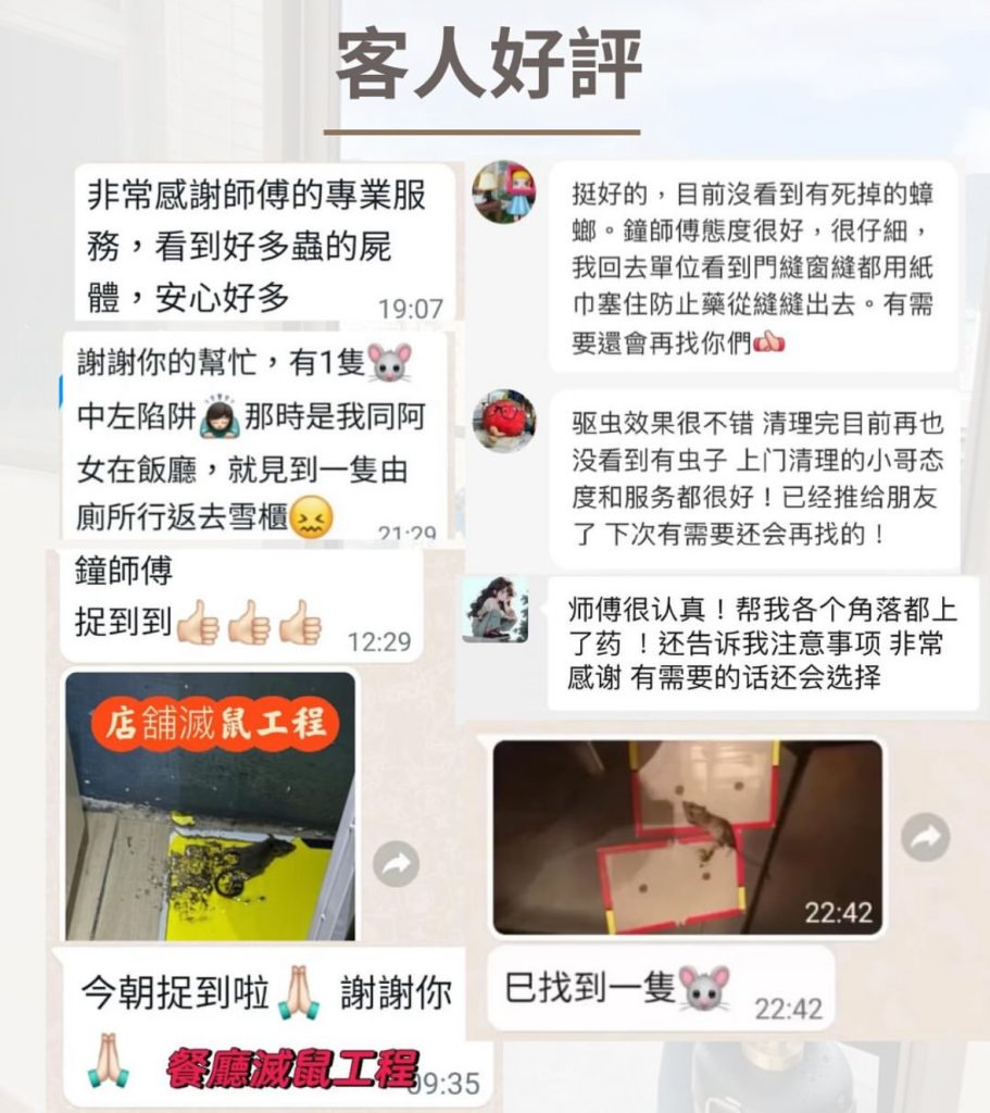 本公司服務網絡遍及全港,客戶涵蓋政府、商業、私人及非牟利機構,備受各界信賴。在蟲害防治領域,我們擁有深厚經驗,曾服務的標誌性客戶包括: